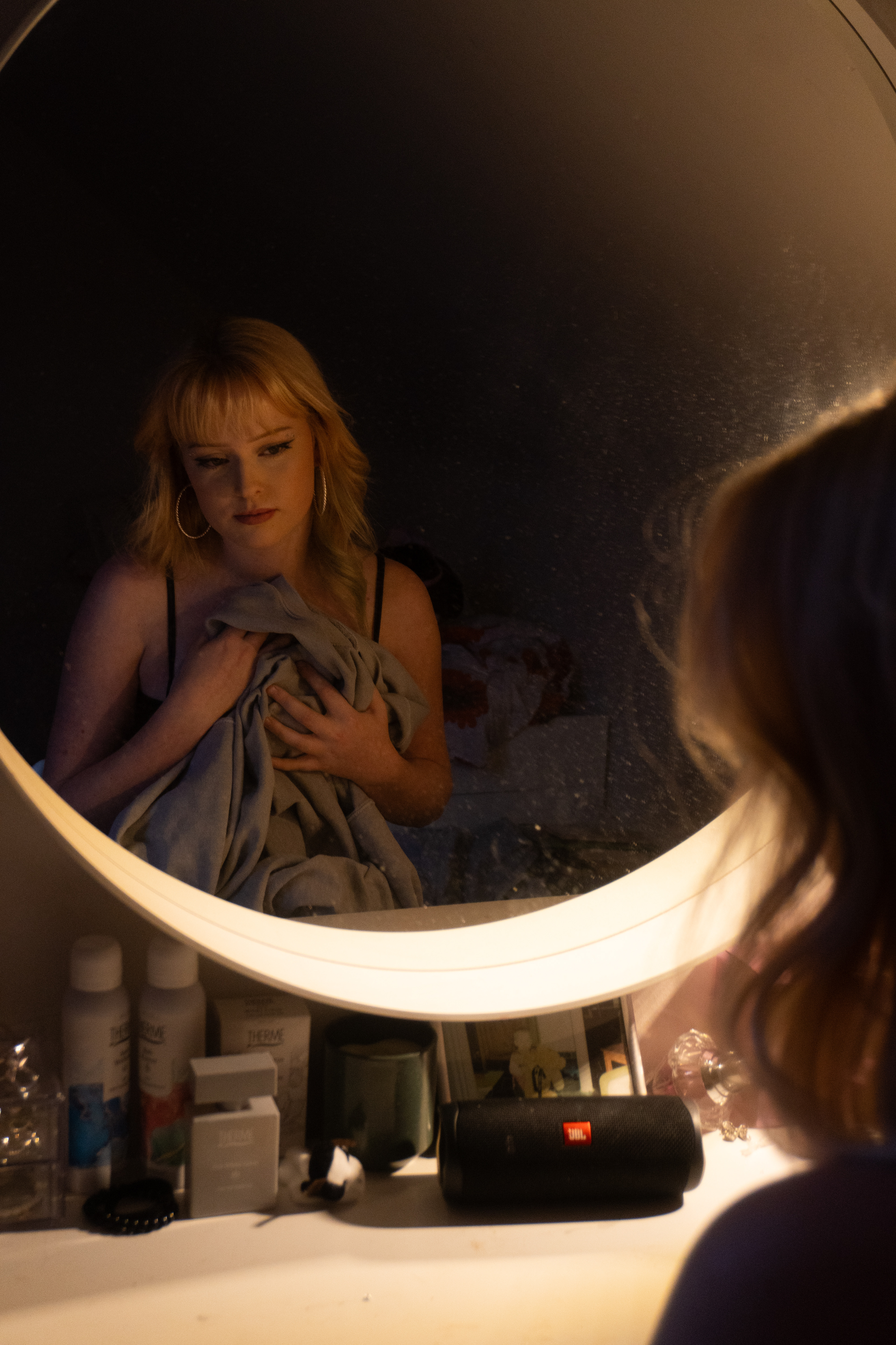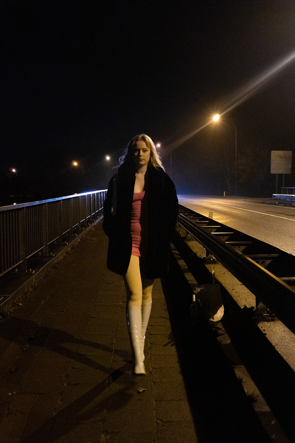 'But what were you wearing?' is een fotografische reeks in fashion en personal fiction die gaat over een vrouw die grensoverschrijdend gedrag en verkrachting meemaakt op straat wanneer ze in haar eentje alleen naar huis loopt na een avondje op stap gaan met haar vriendinnen. Toen ze thuiskwam, keek ze in de spiegel en zag ze de verwondingen die ze er aan over had gehouden. Hoe gaat ze dit ooit kunnen verbergen voor iedereen? Ze schaamt zich en wilt niet dat iemand hier achter komt, iedereen zal haar de schuld geven vanwege de kleding die ze draagt.